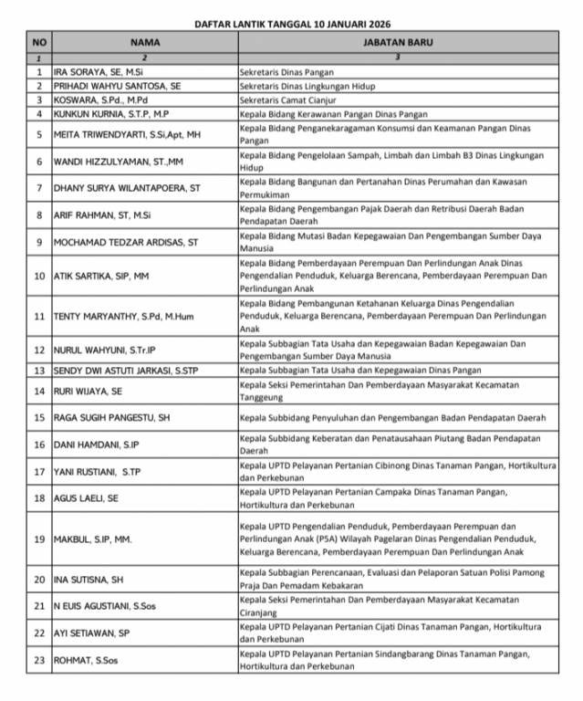 CIANJUR.Maharnews.com- Bupati Cianjur Muhammad Wahyu Ferdian kembali merotasi dan mutasi pejabat di lingkungan Pemerintah Kabupaten Cianjur.