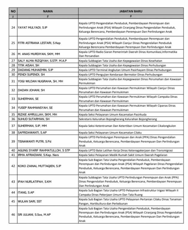 Berikut daftar lantik pejabat