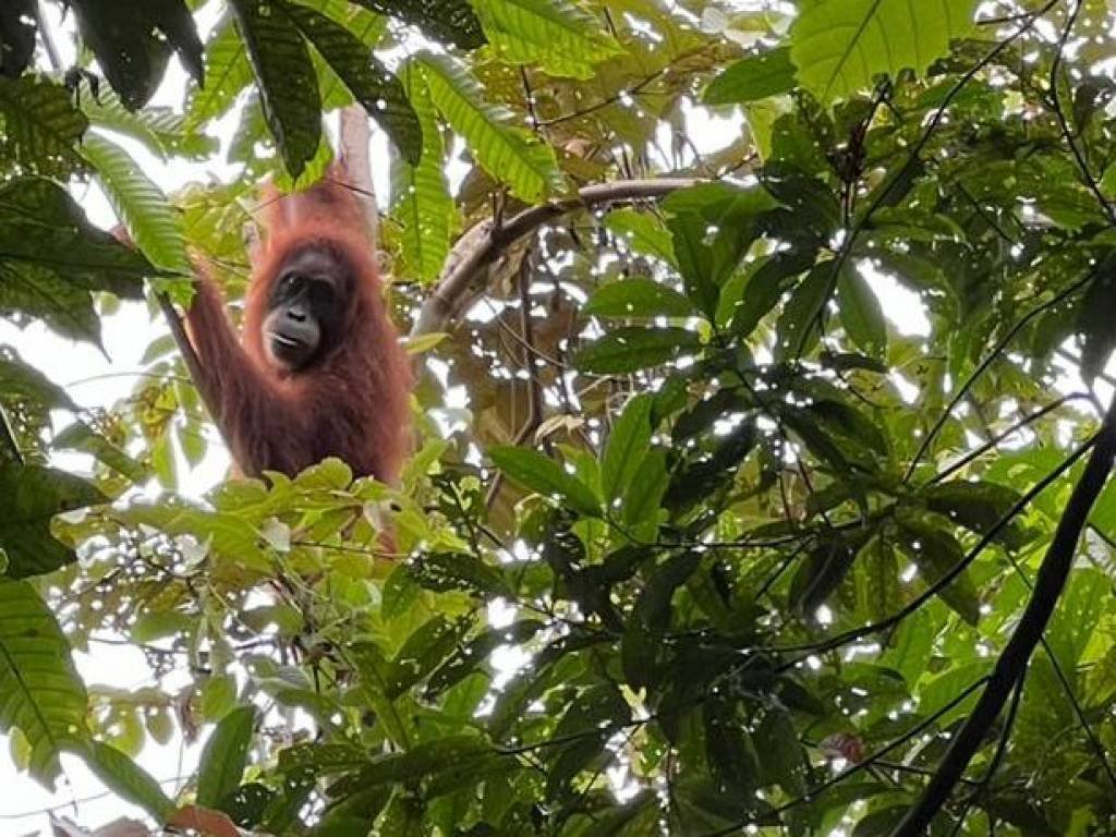 Sekitar satu jam berjalan, kami akhirnya bertemu orangutan pertama kami. Tubuhnya besar, bergelantungan di atas pohon. Kami semua terdiam. Bagiku, ini adalah pertama kalinya melihat orangutan langsung di habitat aslinya. Bukan di balik pagar, bukan di layar, tapi di rumahnya sendiri.