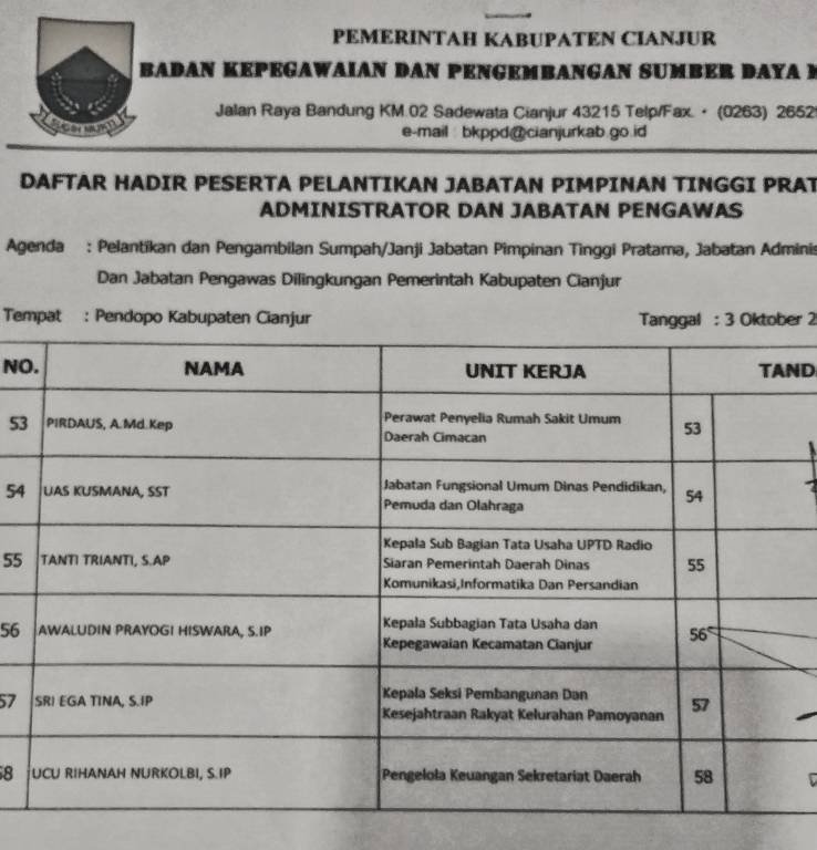 Rotasi Mutasi Pejabat Cianjur Jumat Pon
